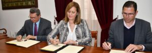 The rector of the Universidad de Córdoba, Manuel Torralbo Rodríguez; the general manager of Magtel, Martín Salgado Devincenzi, and the president of Fundación Magtel, Auxiliadora