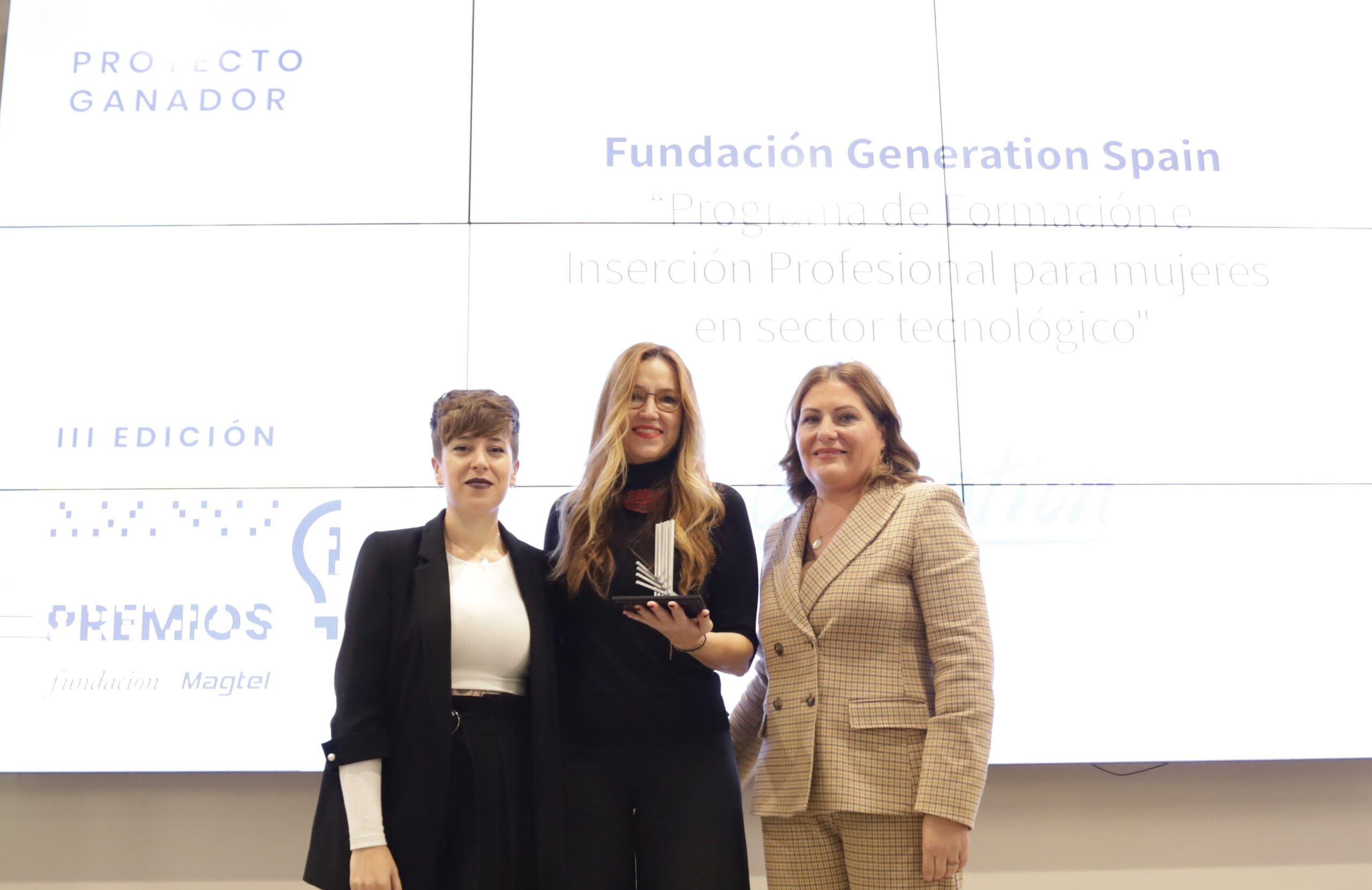 La primera, Inserción sociolaboral, ha recaído en la Fundación Generation Spain, por el proyecto Programa de Formación e Inserción Profesional Para Mujeres en el sector Tecnológico, con accésit para la Comisión Española de Ayuda al Refugiado, por su proyecto, Alianzas que Transforman.