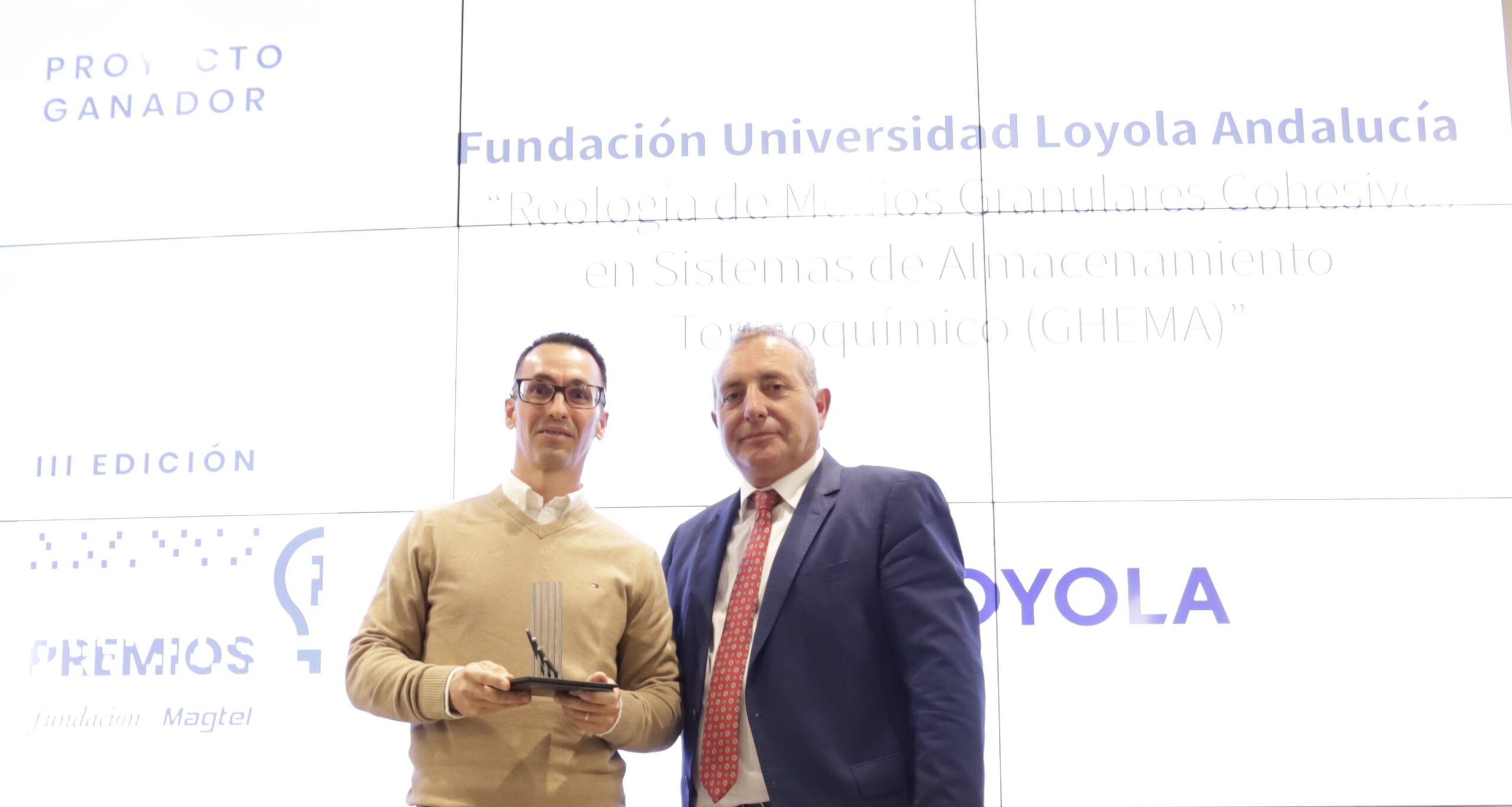 La tercera, Innovación tecnológica, ha sido para la Fundación Universidad Loyola Andalucía, por el Proyecto “Reología de medios granulares cohesivos en sistemas de almacenamiento termoquímico (Ghema)”, con accésit para Smallops, por el proyecto Mallas Ops.